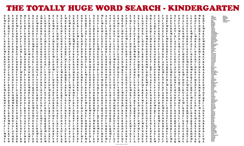 2. The TOTALLY HUGE 3' x 5' Word Search with words for kindergarten