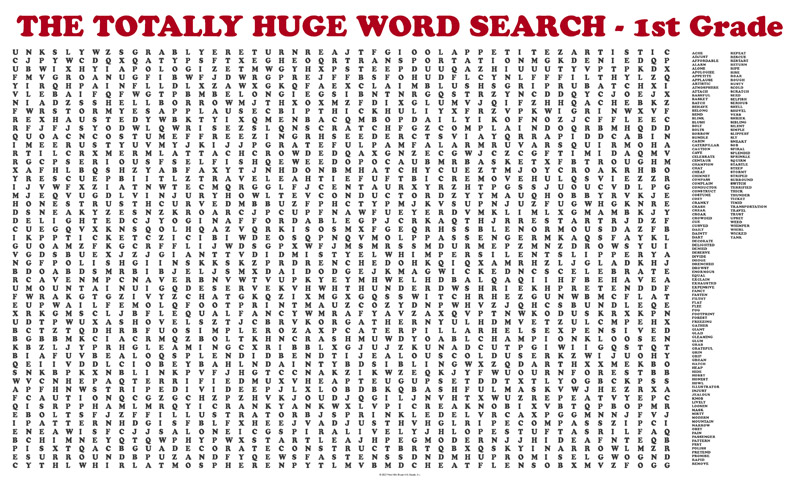 2. The TOTALLY HUGE 3' x 5' Word Search with words for 1st Grade
