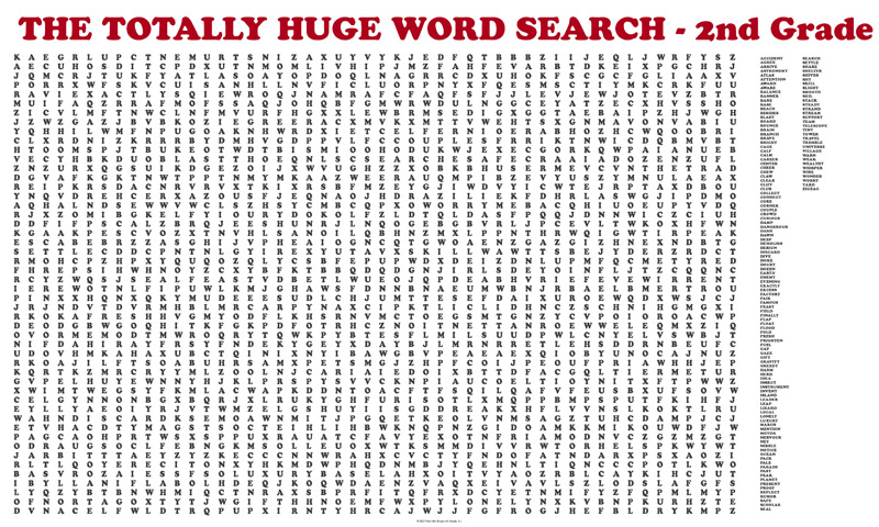 2. The TOTALLY HUGE 3' x 5' Word Search with words for 2nd Grade